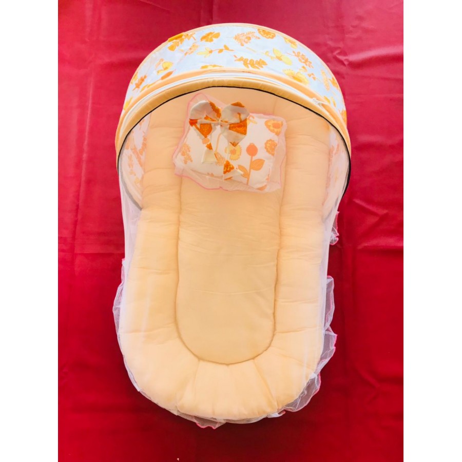NET BED WITH PILLOW FOR NEW BORN BABY ,ORANGE  COLOUR